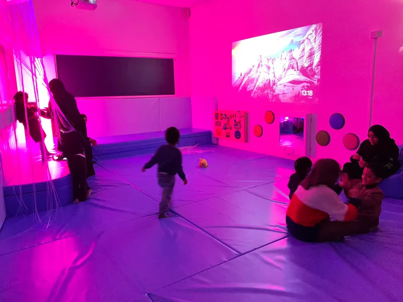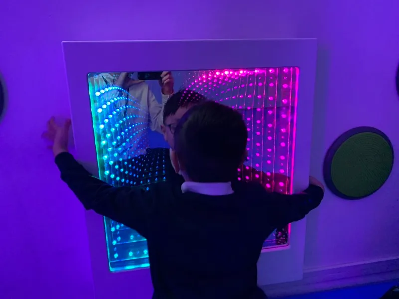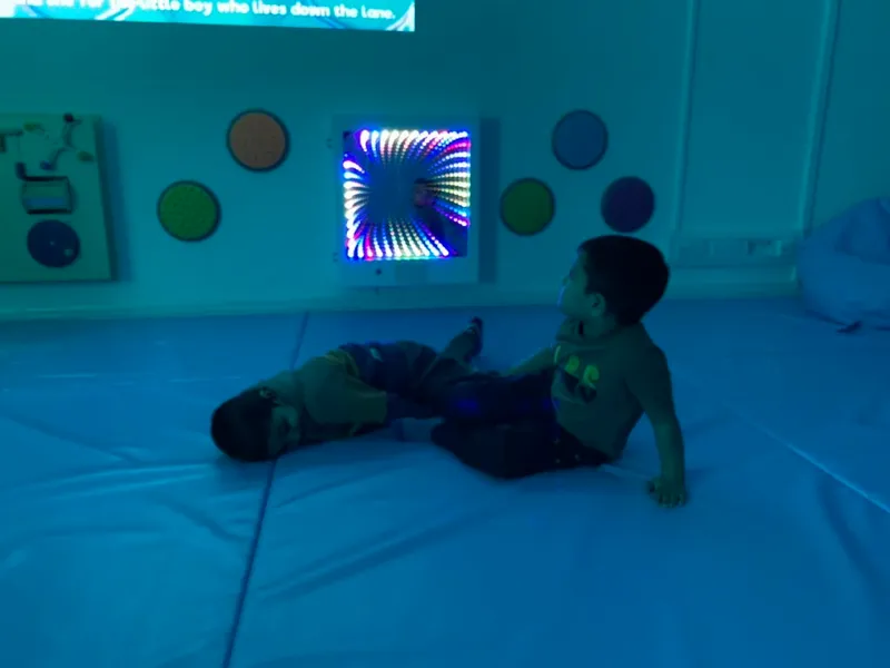 Our sensory room is a specially designed room that combines a range of fun and exciting stimuli to help our children develop and engage their senses. These include lights, colours, sounds and sensory soft play toys all within a safe environment that allows the children using it to explore and interact without risk.